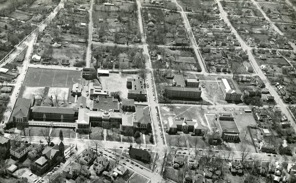 Aerial Image of Longwood College and Surrounding Neighborhoods, 1950s / Courtesy of Archives and Special Collection Librarian Jamie Krogh